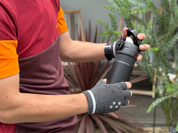 また、ハンドルに触れる手のひら側にはラバープリントを施している為、グローブを着けたままの水分補給やフレームを持ちあげての移動も、滑べらせて落としてしまう心配がありません。
