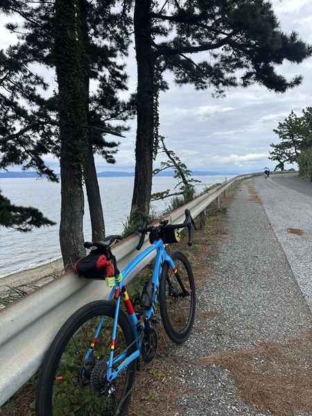 伊良湖岬のエイドを出発後、お取引先のメーカー様(先の方とは別の方)と遭遇。次のエイドステーションまで(×引っ張ってもらう)一緒に向かう事に!!こういう出会いがあるのも自転車の楽しいところですね!ありがとうございました。