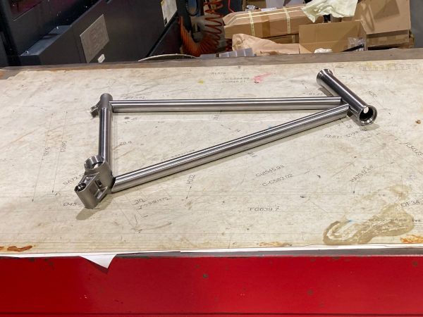 例えば何も考えず歪んだクロモリチューブを組み合わせたとしたら、自転車として出来上がった際に、前輪と後輪が一直線上に無いどころか数mm単位でズレている自転車になっているかもしれません。