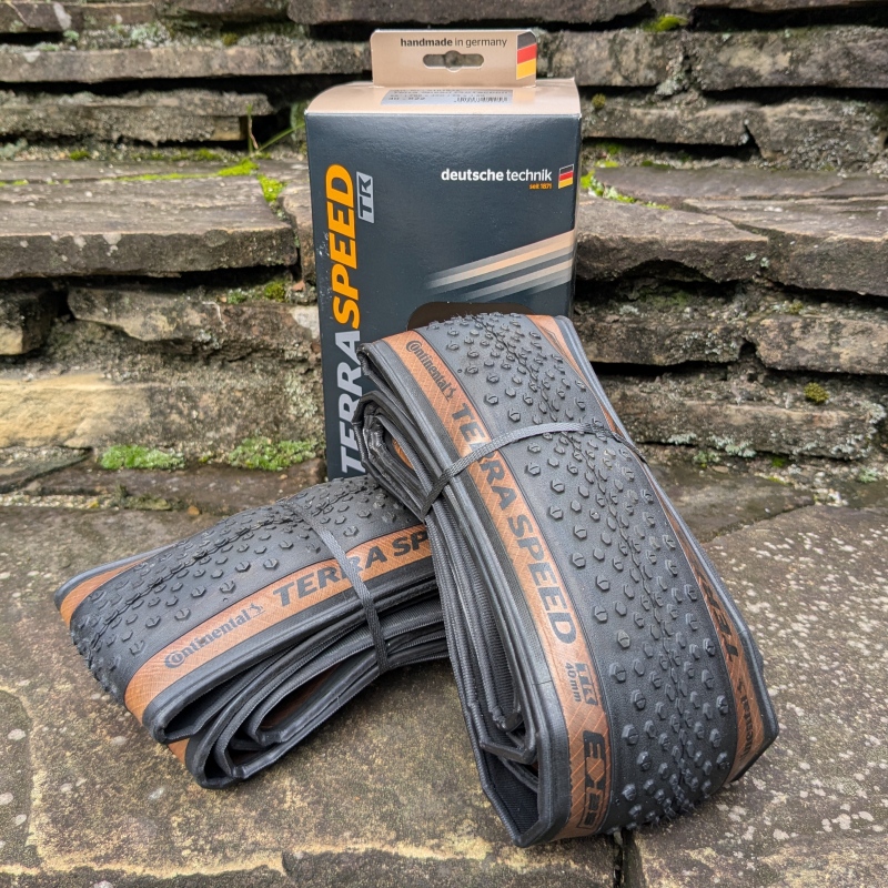 コンチネンタルのグラベルタイヤ「TERRA」シリーズは2019年に発売開始されており、ノブの高さを抑えた軽量グラベルモデル「TERRA SPEED」と、路面を選ばない高い走破性を持つグラベルモデル「TERRA TRAIL」をラインアップしています。