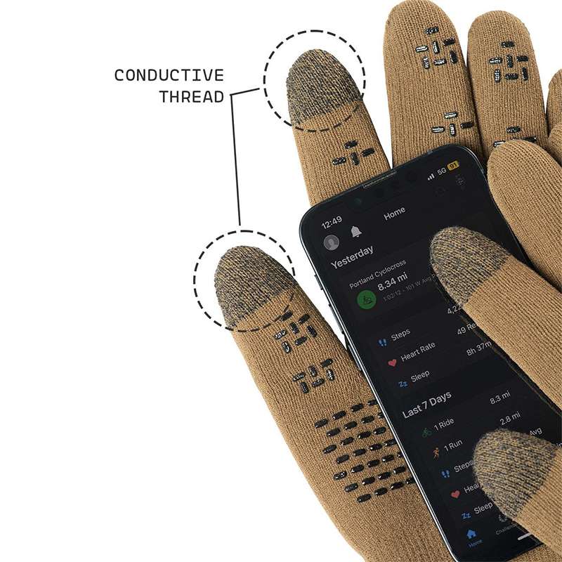 指先と親指に導電性の糸を使用しているため、グローブを着用したままスマートフォンやスマートウォッチの操作が可能です。