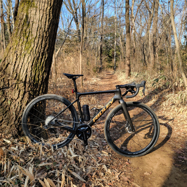 余談ですが、グラベルバイクの性質を活かすべく、オフロードをしっかり走るときは専用のタイヤをチョイスします。複数のホイールセットを用意して遊び分けられる懐の深さもRIDLEY ASTRの魅力の一つですね。