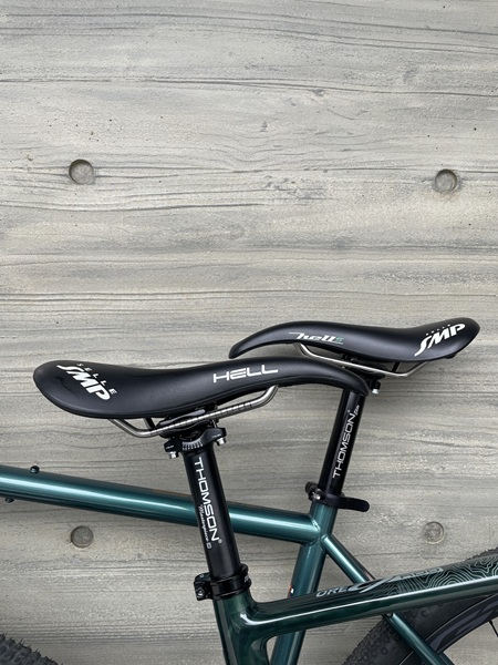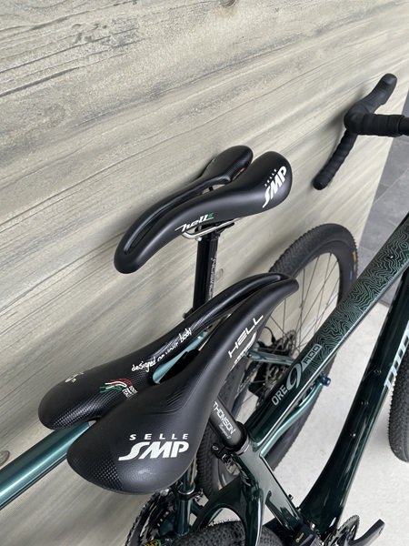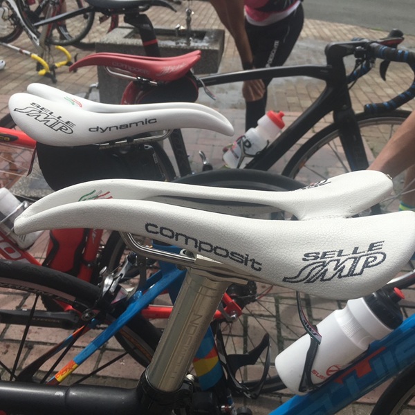 入社して14年、COMPOSITとその薄いパット有の”BLASTER”と”EVOLUTION”しか使用していません。1日かけて300kmを走ったときもお尻の痛みは無し、ペダリングもしやすくパワーも出る。私のバイクに"SELLE SMP"は無くてはならないものになっています。(写真は私と知人のバイク、営業しまくって一時期SMPサドル率が異常でした笑)