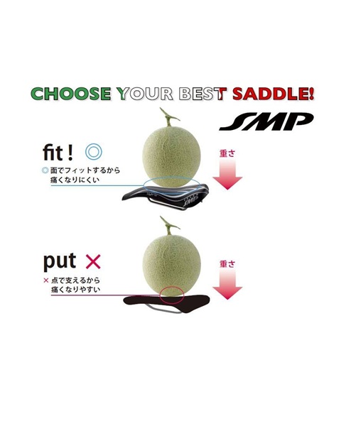 『SMP独特のサドル形状』はお尻と"面"で当たり、お尻とサドルの接地面積が広くなる。」