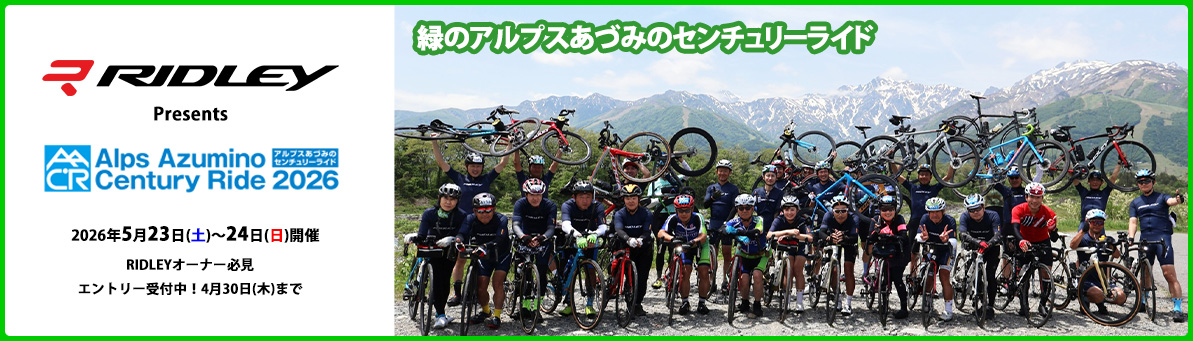 Products 製品 Detail Parts & Apparel パーツ&アパレル Detail News ニュース 2026.02.25 イベント 試乗会・体験会 Y's Road 神戸店 店頭試乗会を開催 2026.02.20 イベント 試乗会・体験会 CYCLE MODE RIDE OSAKA 2026にRIDLEYが出展 2026.02.16 イベント 試乗会・体験会 サイクルショップ ミツイキ 店頭試乗会を開催 News List About RIDLEY RIDLEYについて Detail Technology テクノロジー Detail Products 製品 Aero to Aero Series NOAH FAST 3.0 NOAH FAST 3.0 Uno-X Team (数量限定) NOAH 3.0 Aero to Weight Series FALCN RS FALCN RS Uno-X Team (数量限定) FALCN Time Trial Series DEAN FAST DISC All Road Series GRIFN RS GRIFN Gravel Road Series ASTR RS ASTR KANZO FAST KANZO ADVENTURE Cyclo Cross Series X-NIGHT RS X-NIGHT SL DISC Endurance Series (2025) Fenix SLiC Movie 動画 【RIDLEY】Noah Fast 3.0 - The Fastest Bike We Ever Made 視聴時間:00:57 【RIDLEY】グラベル初体験 in ニセコグラベル 視聴時間:00:57 【RIDLEY】緑のAACR 2024 北アルプスの綺麗な景色の中160kmしっかり走ってきた! 視聴時間:15:30 【RIDLEY】Falcn RS 視聴時間:00:57 ロードバイクの“無駄がない完成車”「バイククラフト」を知ってる? 視聴時間:9:49 エンデュランスレーサー「フェニックス」を解説&インプレッション 視聴時間:12:16 Movie List Dealers List 正規販売店 Detail RIDLEY公式SNS
