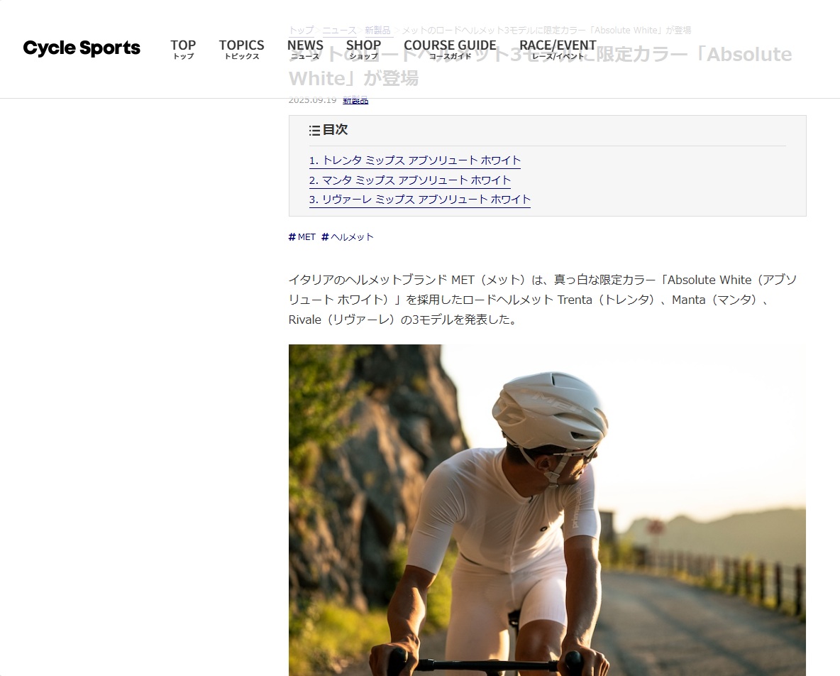 メットのロードヘルメット3モデルに限定カラー「Absolute White」が登場|サイクルスポーツがお届けするスポーツ自転車総合情報サイト|cyclesports.jp