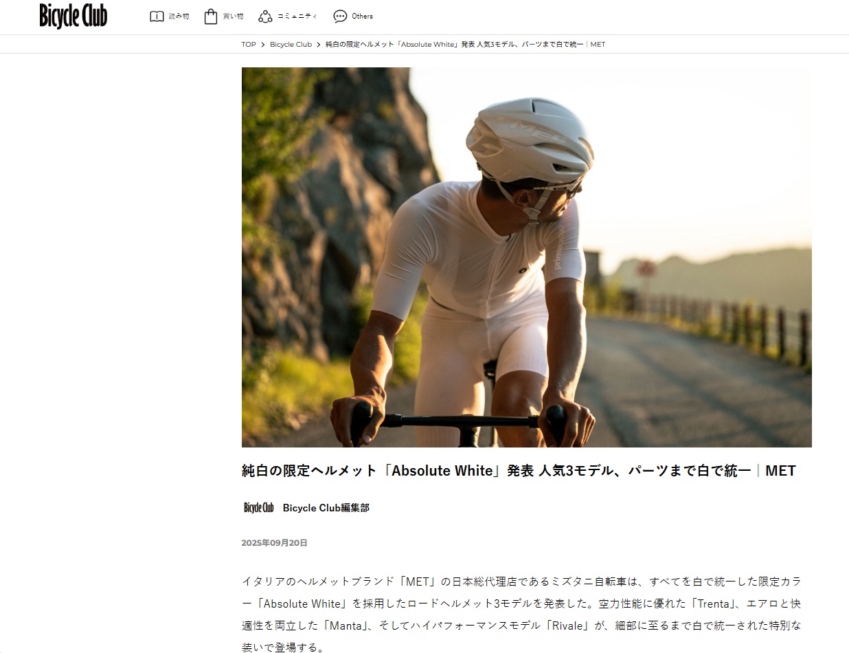 純白の限定ヘルメット「Absolute White」発表 人気3モデル、パーツまで白で統一|MET | Bicycle Club