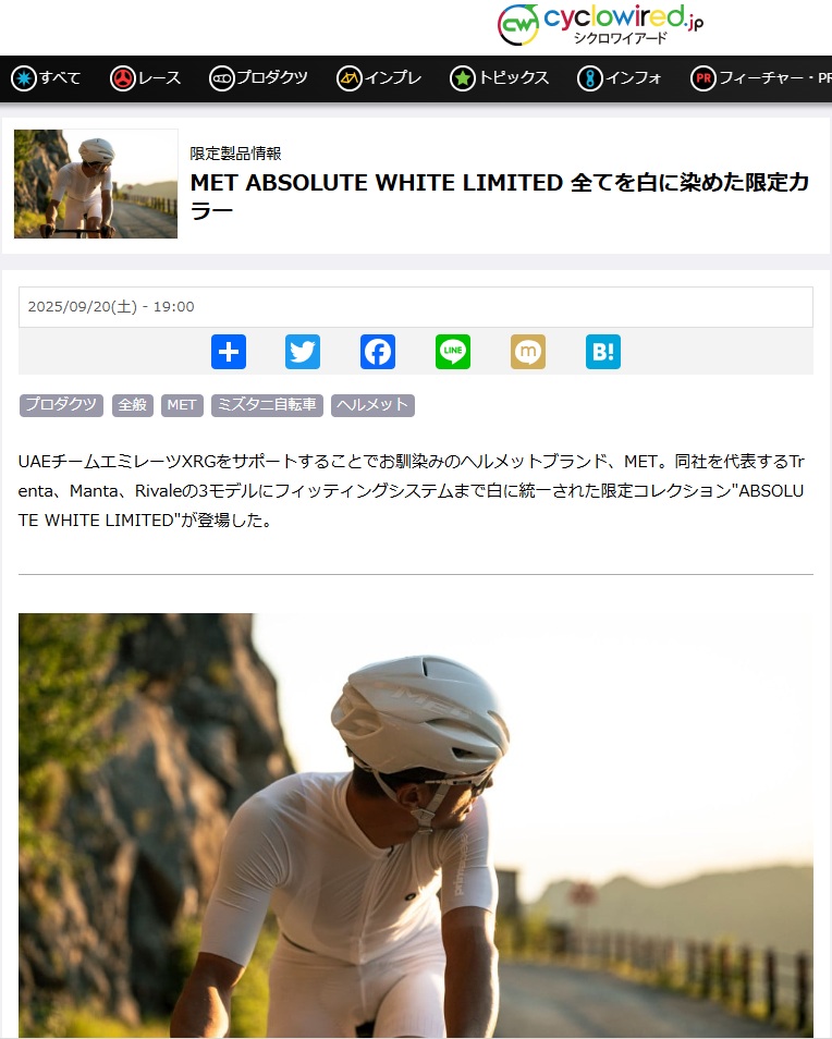 各メディアで【MET】ABSOLUTE WHITE リミテッドエディションが紹介されました!