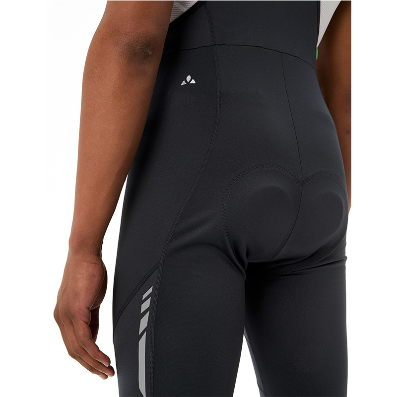 前面の膝部分には100%防風素材、内側にはやわらかなフリースをあしらい、快適性に優れた VAUDE T-PAD を備えた、寒い季節のライドに頼れるビブタイツです。