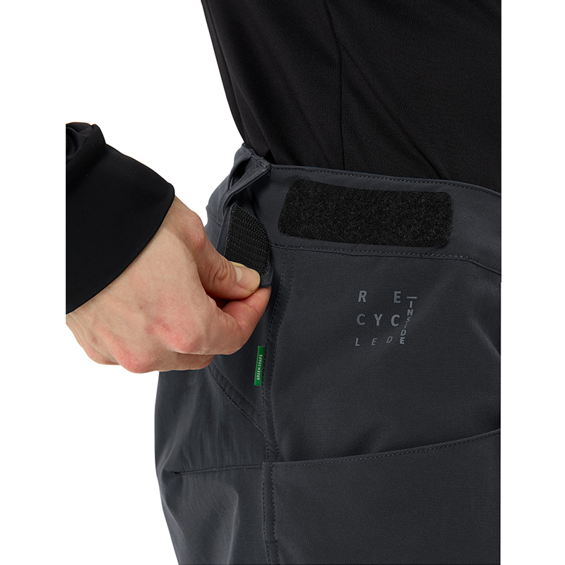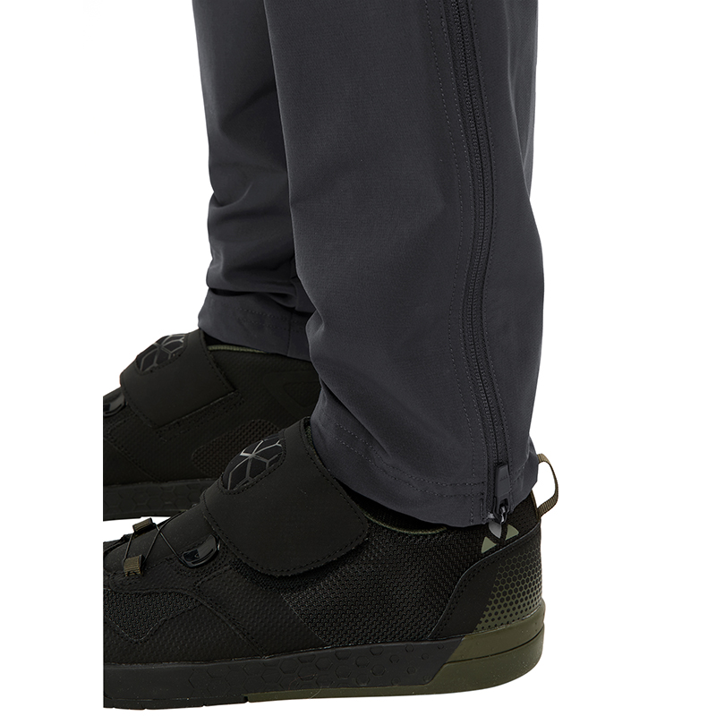 小雨や泥はねも気にならない撥水加工付きで、お尻部分は2層の防水インサートを備え、濡れたサドルでも安心。裾に備えたジッパーによって靴を履いたままでも着脱ラクラクとなりました。