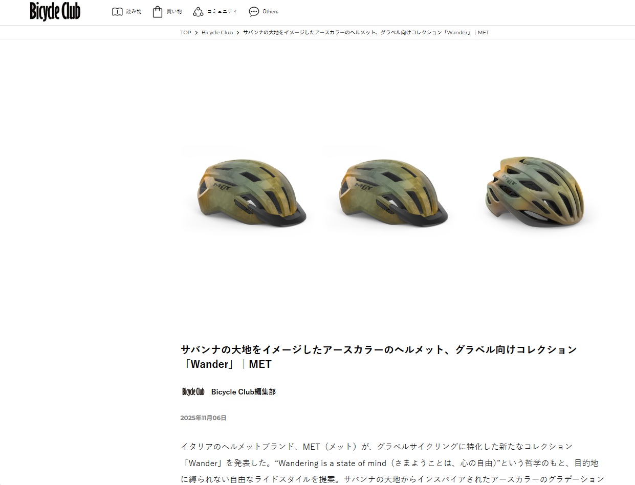 サバンナの大地をイメージしたアースカラーのヘルメット、グラベル向けコレクション「Wander」|MET | Bicycle Club