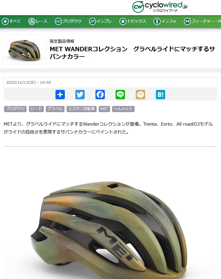 MET WANDERコレクション グラベルライドにマッチするサバンナカラー - 限定製品情報 | cyclowired