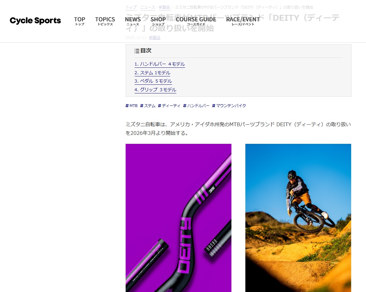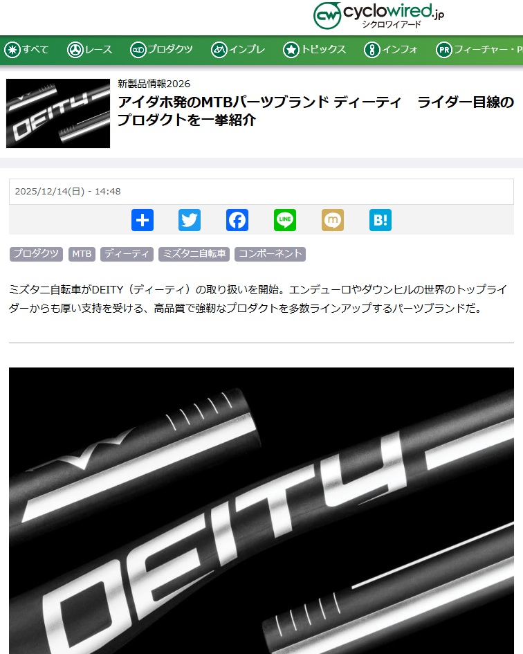 ミズタニ自転車がMTBパーツブランド「DEITY(ディーティ)」の取り扱いを開始|サイクルスポーツがお届けするスポーツ自転車総合情報サイト|cyclesports.jp