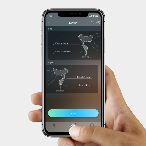 アプリとのペアリングにより、好みの変速スピード選択や、シフトボタンのカスタマイズ、リアディレーラーのファームウェアを更新することができます。