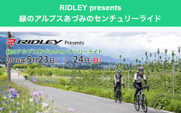 新緑の美しい季節に開催。雄大な北アルプスの景観を楽しみながら、長野県松本~安曇野~白馬の田園風景や地元の方々のおもてなしたっぷりのエイドステーションを満喫して走るロングライドイベント。