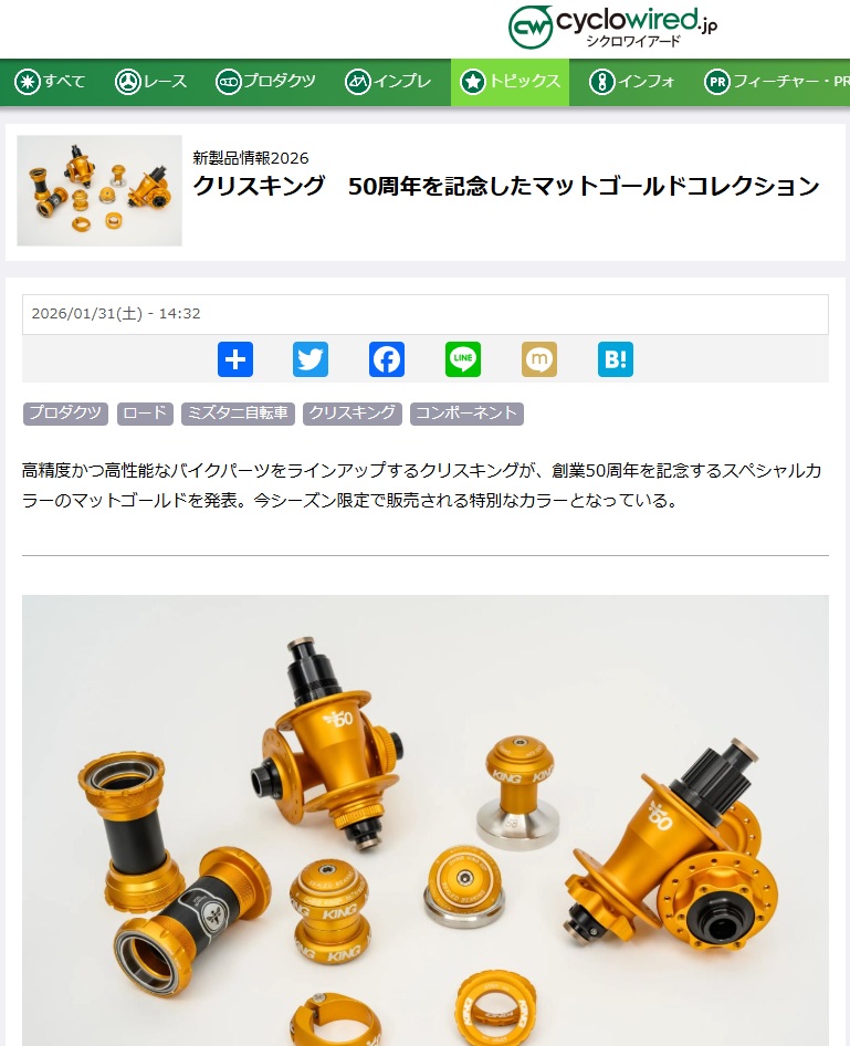 cyclowired.jpで【Chris King】創業50周年記念スペシャルカラーの「Matte Gold」が紹介されました!