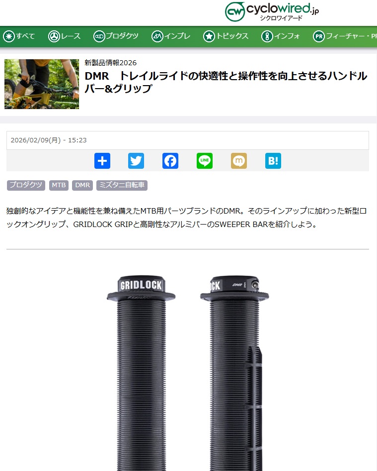 cyclowired.jpで【DMR BIKES】GRIDLOCK GRIP & SWEEPER BARが紹介されました!