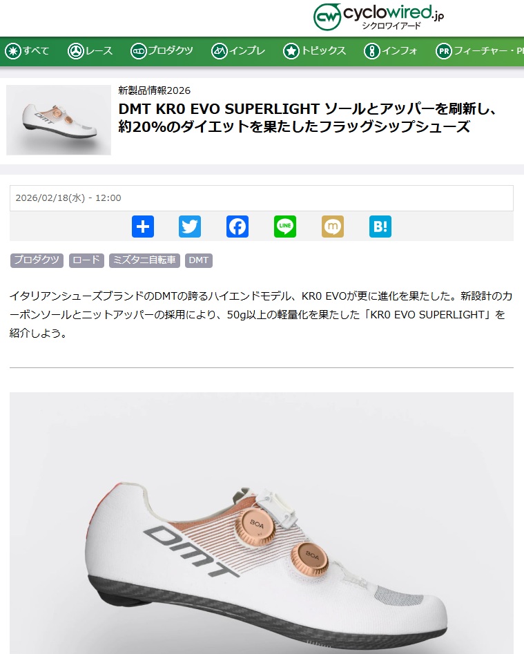 各メディアで【DMT】KR0 EVO SUPERLIGHTが紹介されました!