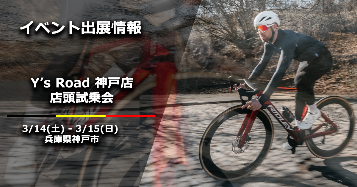 3月14日(土)~3月15日(日)に兵庫県神戸市のRIDLEY正規販売店「Y's Road 神戸店」様にてRIDLEYの店頭試乗会を開催します。