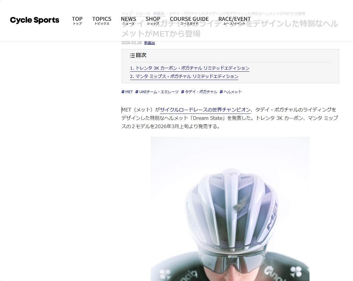 各メディアで【MET】TADEJ POGAČAR EDITIONが紹介されました!