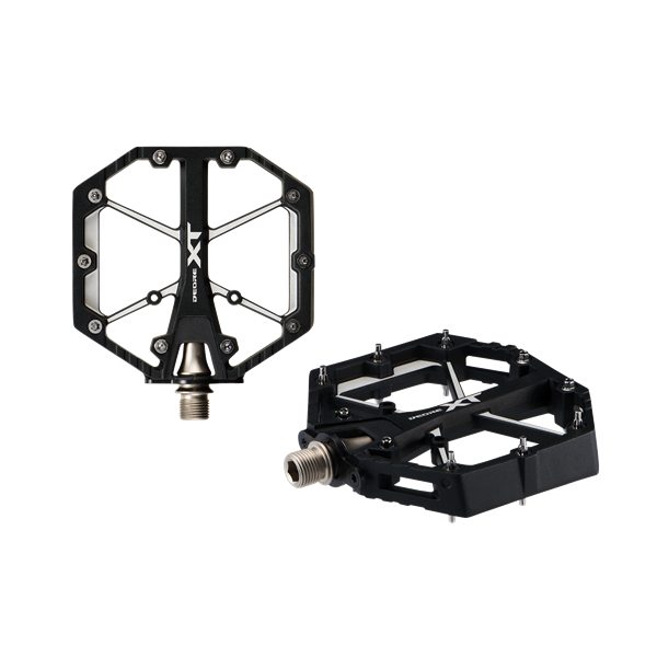 新しいSAINTおよびDEORE XTのフラットペダルは、その実績と哲学を、現代のマウンテンバイクに対応する新世代のワイドプラットフォームフラットペダルへと受け継いでいます。