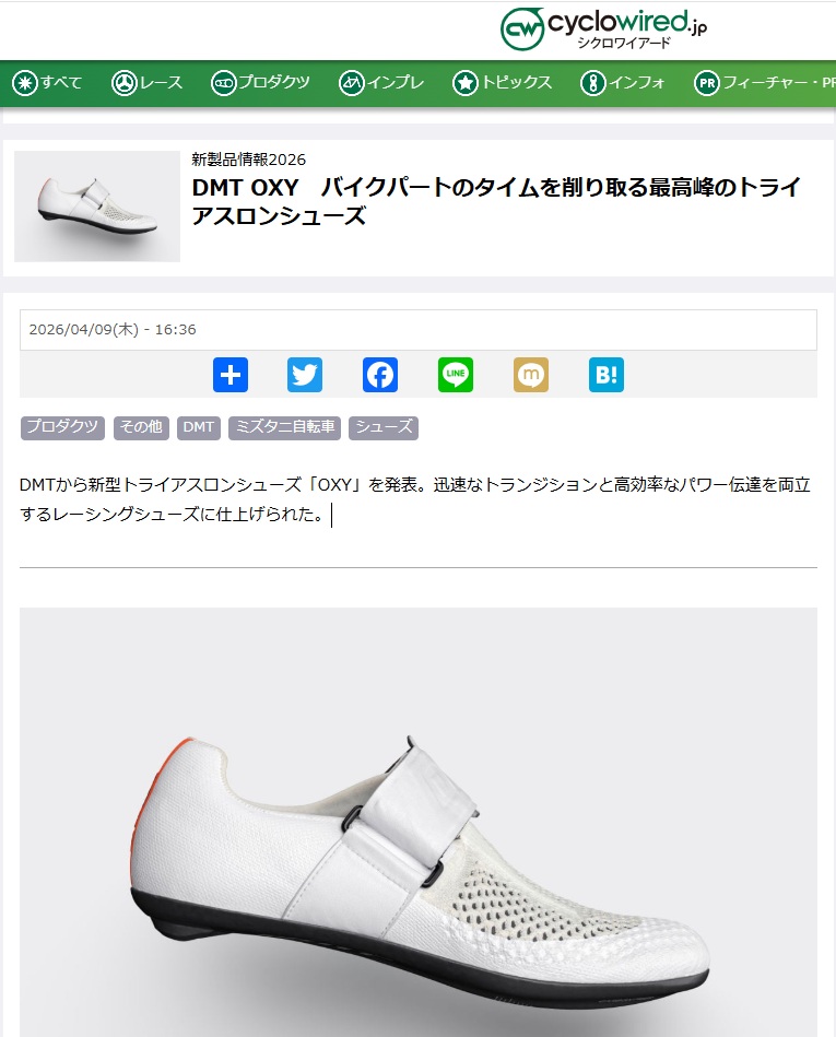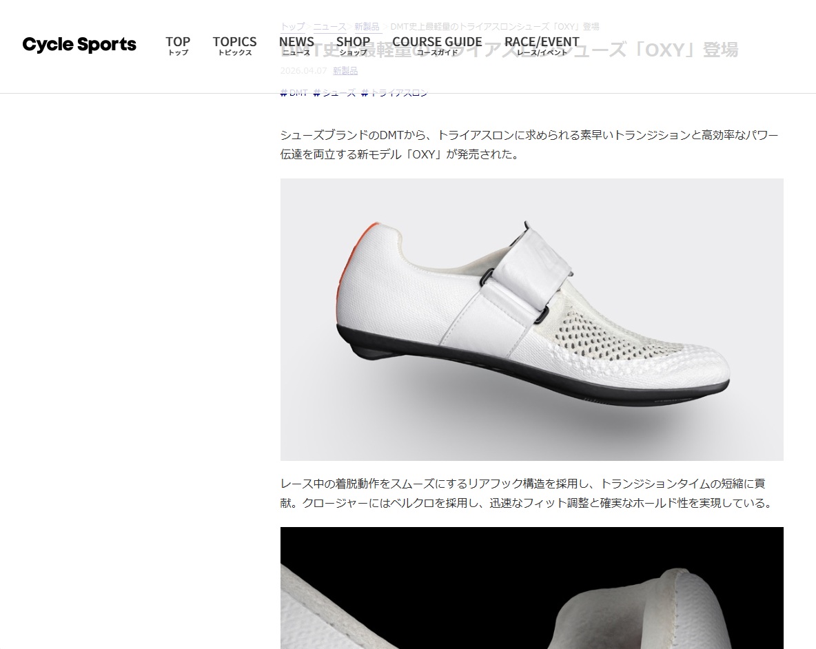各メディアで【DMT】OXYが紹介されました!DMT史上最軽量トライアスロンシューズのOXY。