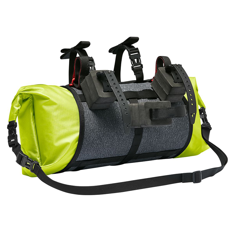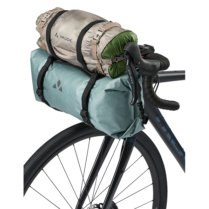 また、ストラップを使えば追加のギアや軽量なテントも収納可能です。取り付けストラップはすべてのマウンテンバイクのハンドルバーにフィットし、幅30cmのバッグはほとんどのグラベルバイクやロードバイクのハンドルバーにも対応します。
