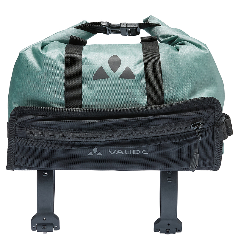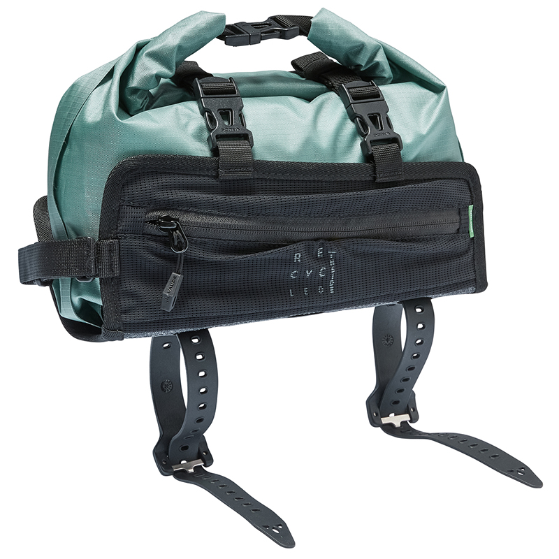 2つの小さなストレッチサイドポケットは、プロテインバーやチャップスティックを入れておくのに便利です。防水パニアはジッパー式で、3リットルまでの荷物を入れたらロールダウンし、サイドリリースバックルでしっかりと固定することができます。また、このパニアにはストラップが付属しているので、買い物の際は取り外して持ち運びも簡単にできます。