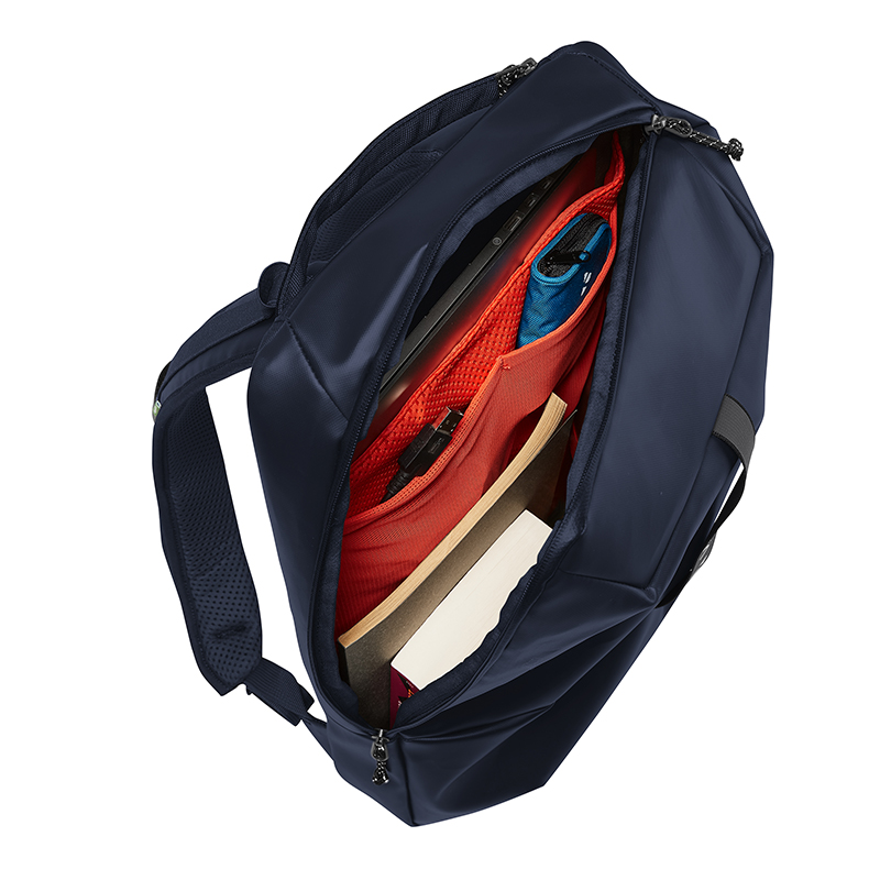 環境に優しいブルーサイン®認証を受けたリサイクル・ポリエステルは耐久性・撥水性・防汚性にも優れています。反射材、筆記用具のためのスペース、トローリー用スリーブなど、便利な機能も充実。メインコンパートメントへのアクセスは、大きな左右非対称のジッパーにより非常に便利で、どんなに深く詰め込んでも簡単に見つけられます。外側の小さなジッパーポケットは、携帯電話、ティッシュ、財布を手元に置いておくのに便利です。背面には十分なパッドが入り、人間工学に基づいたショルダーストラップが快適な背負い心地を約束します。また、ショルダーストラップには伸縮性の高いキーホルダーが装備されているので、深夜に帰宅したときでも、パックを脱いで鍵を探す必要はありません。