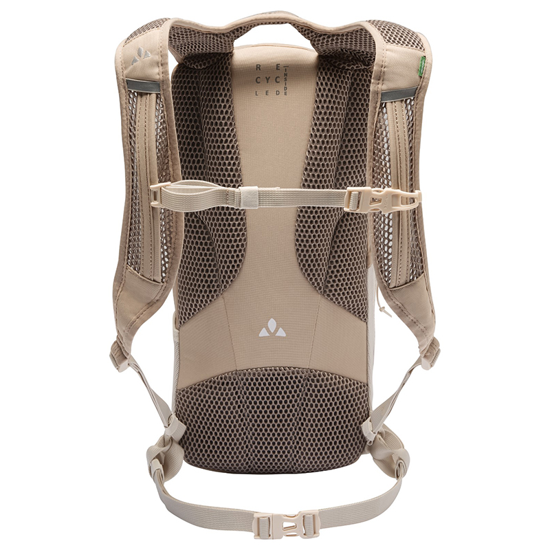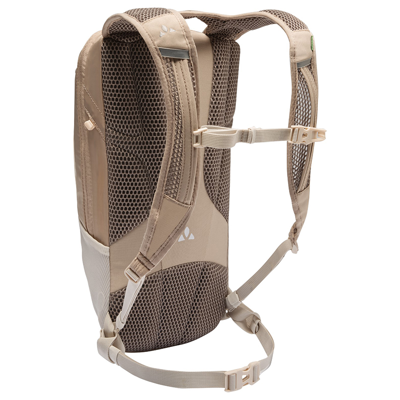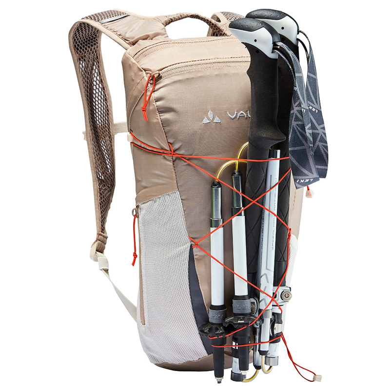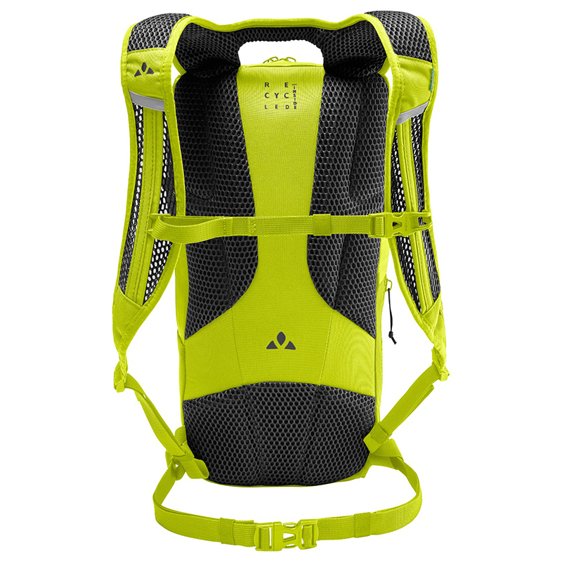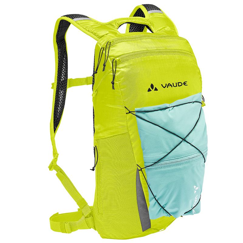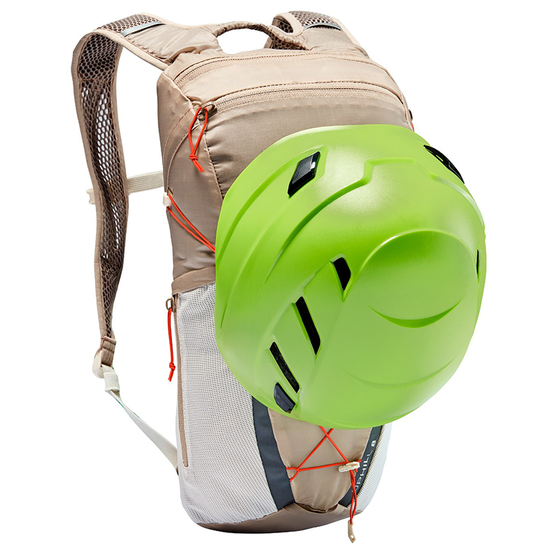 左右非対称の開口部を持つメインコンパートメントは8リットルの容量を持ち、フラットで伸縮性のあるメッシュポケットとジップサイドポケットにより、パックを脱ぐことなくスマホや補給食にアクセスできます。