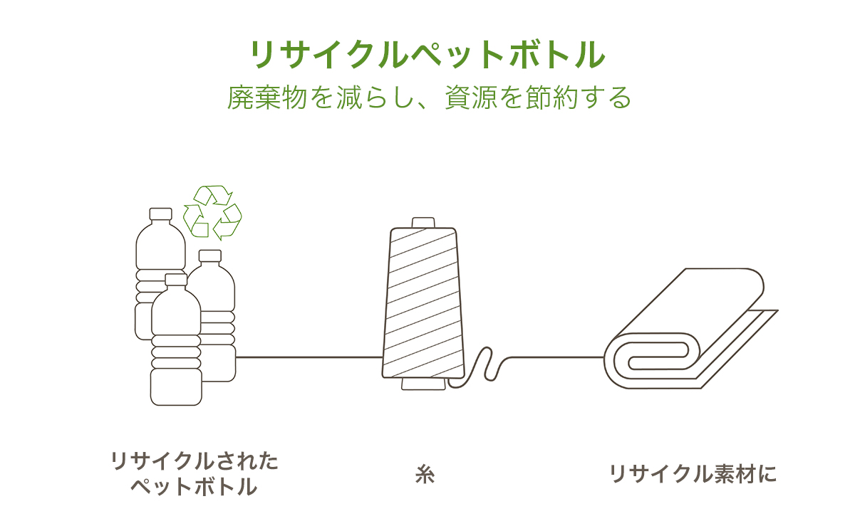 - リサイクルペットボトルから作られる高品質ポリエステル