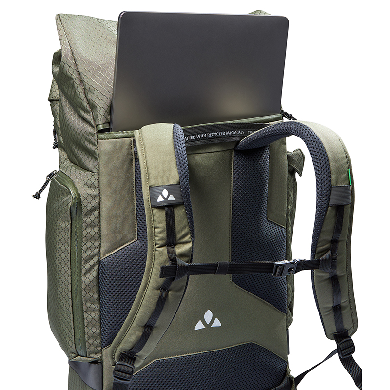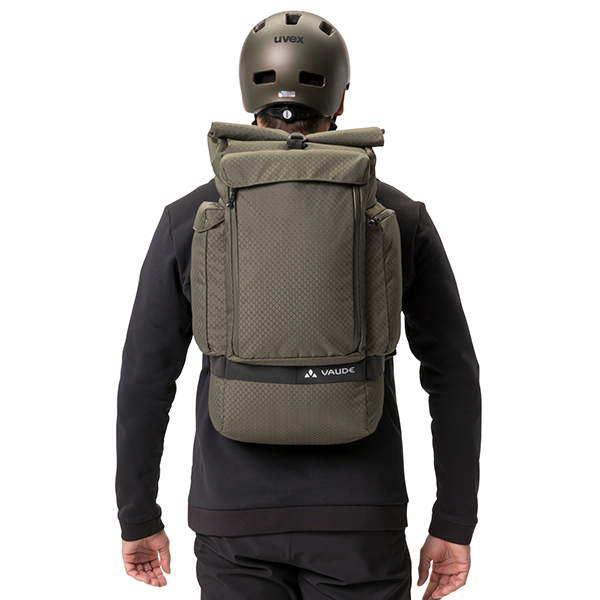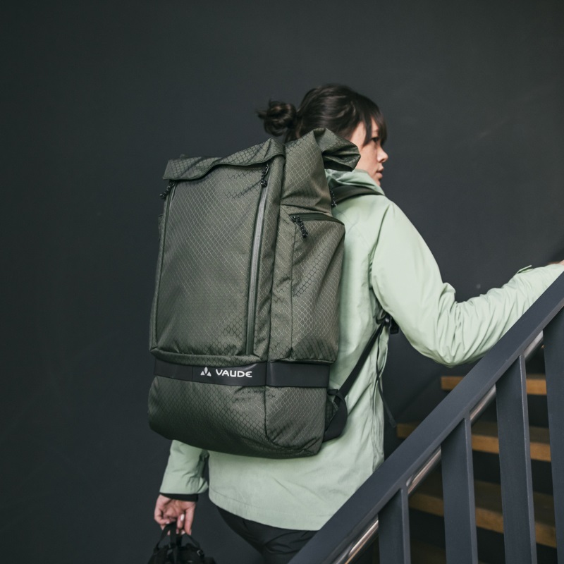 快適な背面システムにより、ロールクロージャ―を開ければ大きな荷物も楽に持ち運ぶことができ、付属のレインカバーにより雨天時も安心です。バックパックの下部3分の1の位置にデザインされたリフレクターバンドが夜間の視認性を確保します。