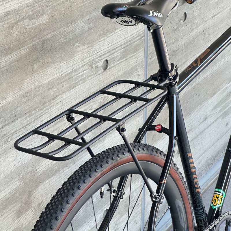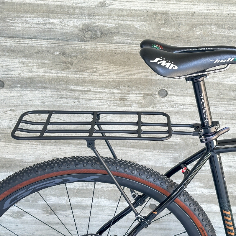 本体はシートポストに装着したマウントブラケットとシートステーにボルトオンで取り付ける構造で、6角レンチのみで簡単に着脱が可能になっています。シートポストにマウントブラケットを常設しておけば必要な時だけバッグサポートを取り付けて使用することができます。