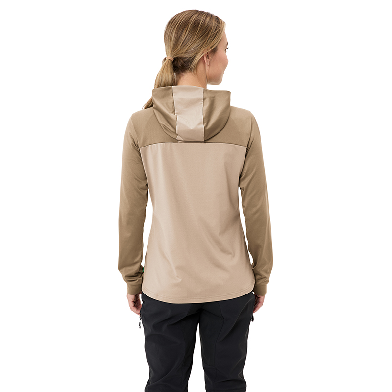 ヘルメット下にも快適に着用できるフードや前傾姿勢にフィットする長めの背面、立体的な袖のデザインなど、細かな工夫も嬉しいポイント。
