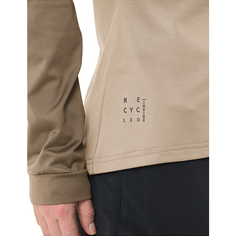 ストレッチ性に優れたリサイクルポリエステルを使用し、ペダリングを妨げない軽やかな着心地。内側はふんわりとした起毛フリースで、暖かさと通気性を両立。首元はスカーフのように包み込む高めの襟で、冷たい風からやさしく守ってくれます。