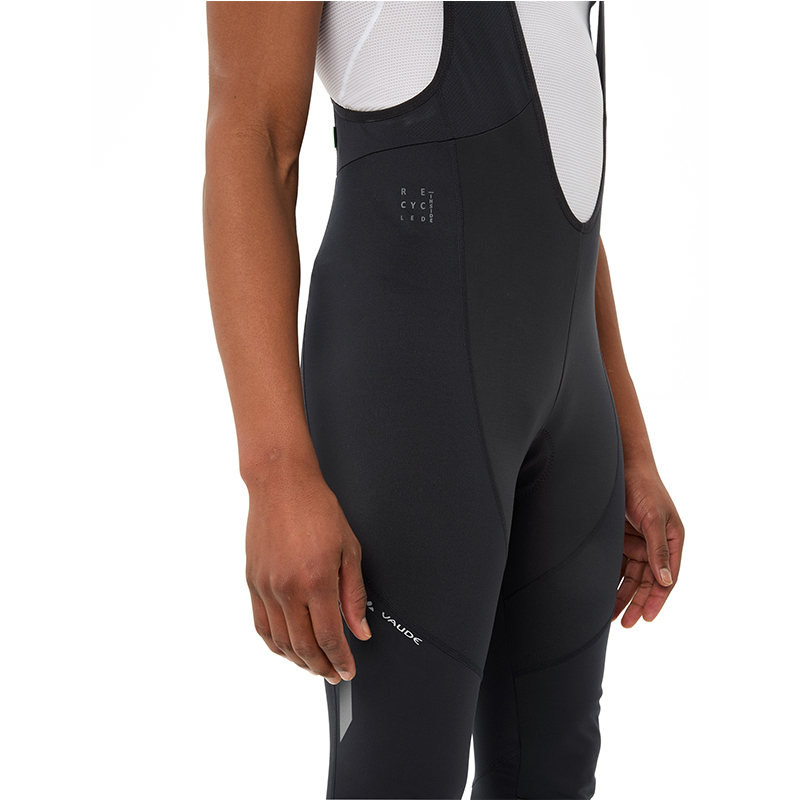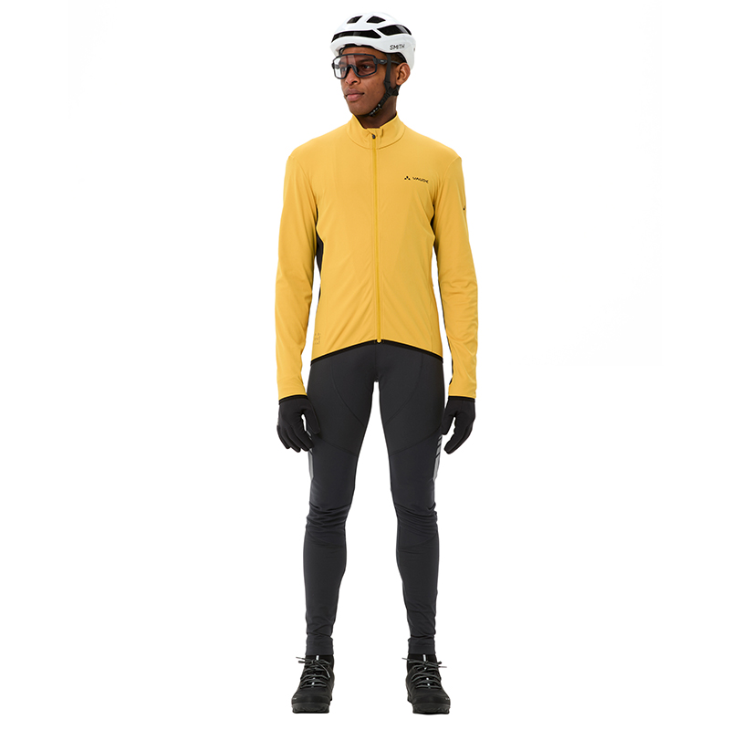 前面の膝部分には100%防風素材を使用し、冷えやすい部分をしっかりガード。内側にはやわらかなフリースをあしらい、ぬくもりと肌触りの良さを両立しています。4方向に伸びるストレッチ素材と立体裁断により、ペダリングの動きにも自然にフィット。VAUDE独自のTパッドは、衝撃をやさしく吸収し、長時間のライドでも快適。