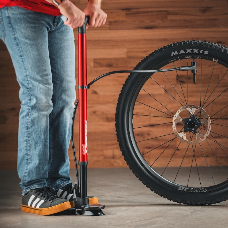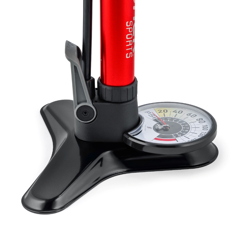 - デュアル機能フロアポンプ:通常の高圧フロアポンプとして使用可能 (フットレバーを上げた状態) 内蔵されたエアタンクを使って、一気に強力な空気を送りこむ"ブースト"機能も搭載 (フットレバーを下げてタンクに圧着→レバーを戻すと一気に噴射)