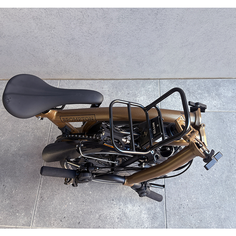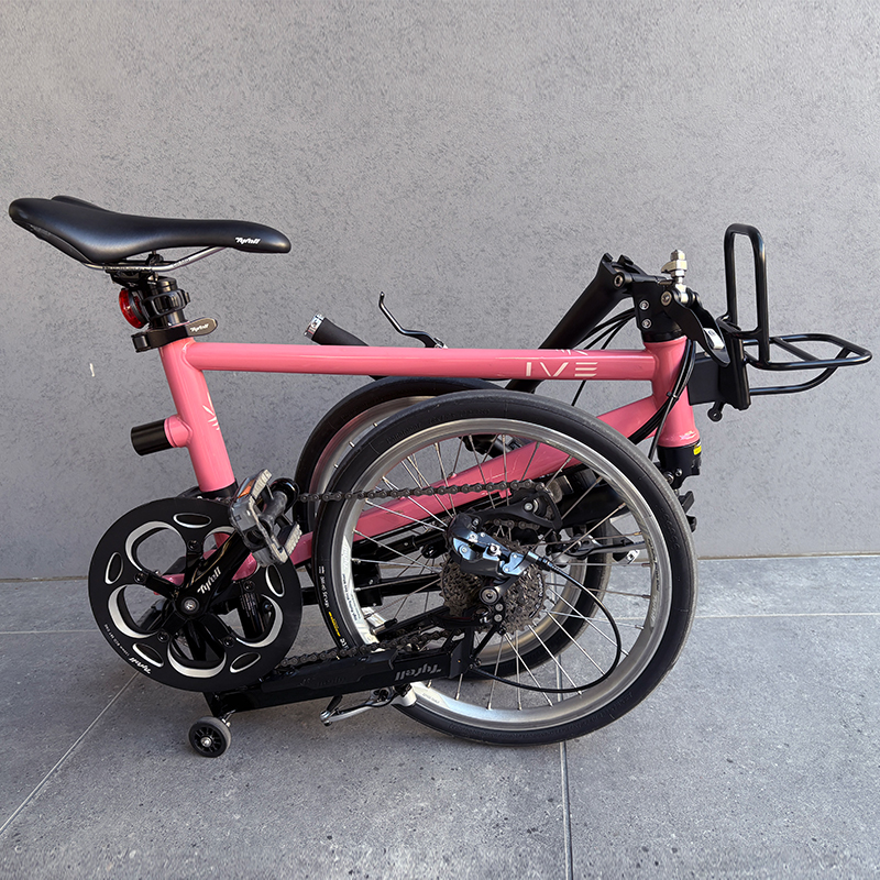 装着したまま車体を折り畳むことが可能です(BROMPTON、Tyrell IVEの場合)。