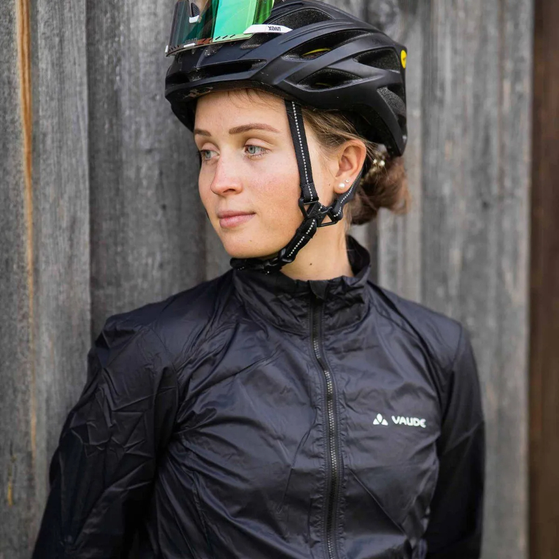 メイン素材には100%リサイクルポリアミドを採用し、VAUDE独自の耐久撥水加工「Eco Finish」によって撥水性・防汚性も確保。急な小雨や汚れに強く、気候が変わりやすいサイクリングシーンで頼れる一枚です。